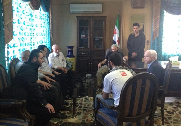 این تصویر سناتور آمریکایی در ماه مه 2013(در اوج جنگ داخلی در سوریه) در مرز سوریه با ترکیه در حال دیدار با جمعی از شورشیان سوری